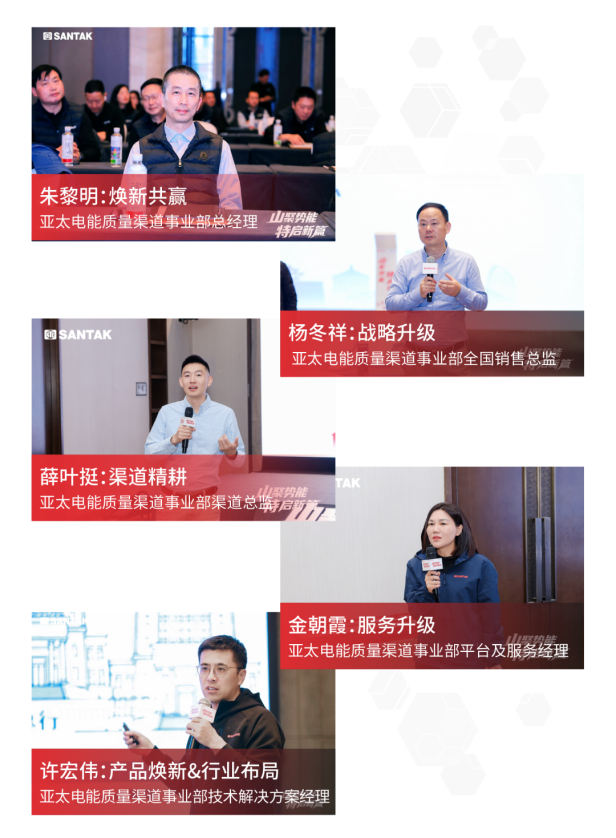 在会议中,亚太区电能质量渠道事业部总经理朱黎明、亚太区电能质量渠道事业部全国销售总监杨冬祥,及山特各业务主要负责人围绕“客户、合作、产品、营销、服务”等维度,深度解读山特渠道战略方向与制度优化,明确新发展目标。